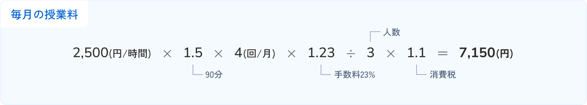 ※手数料には各授業カテゴリーごとに最低月額手数料があります。